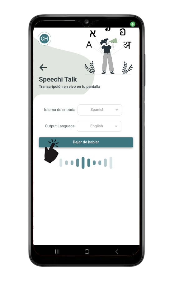 En ese momento, la pestaña Speechi Talk estará disponible en la aplicación.