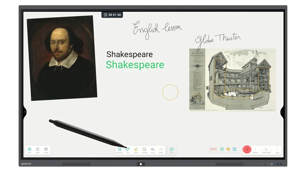 Para escribir en la pizarra blanca Note es muy sencillo: solo tienes que hacer clic en el botón Lápiz en la barra de herramientas central y escribir en la pantalla con el dedo o con el stylus