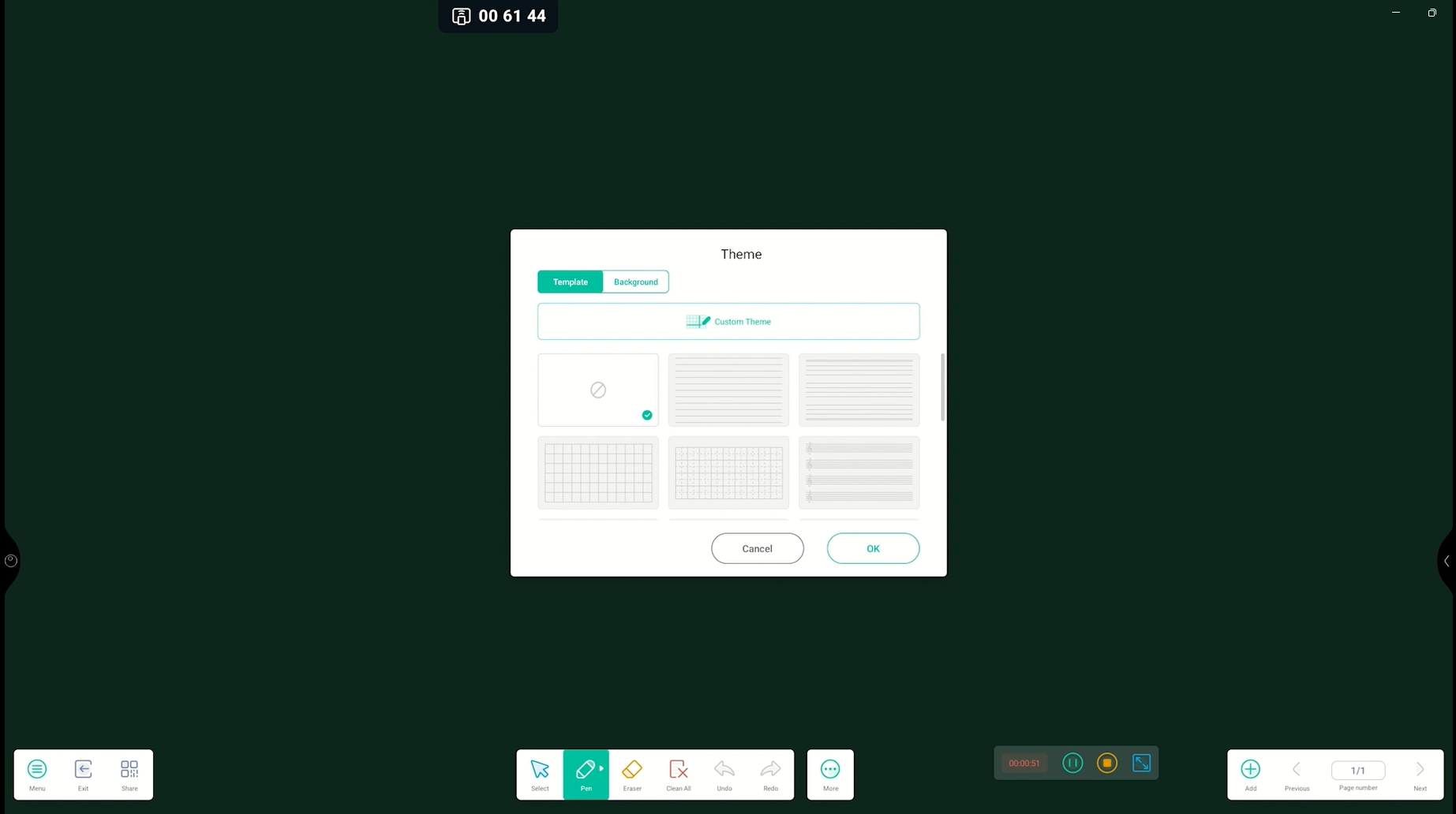 Se trata sin duda del elemento de la pizarra digital que un profesor quiere personalizar primero. Al ir a Menú > Tema, accedes a 2 tipos de fondo: