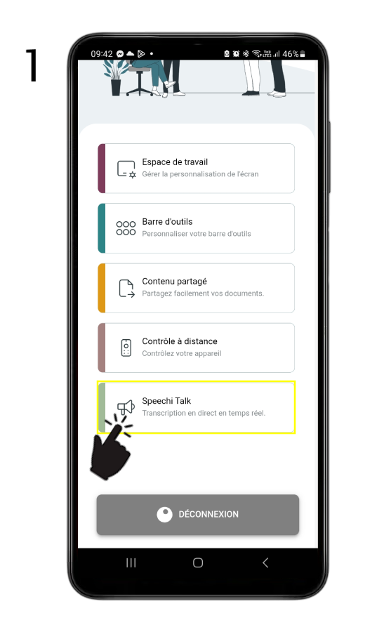 Dans le menu de votre application Speechi Connect, le dernier onglet “Speechi Talk” devient accessible. Cliquez dessus.