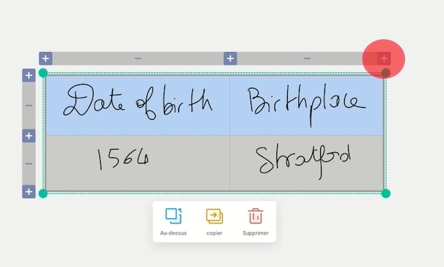 Avec la reconnaissance de formes, dessinez à main levée des formes qui se transforment en formes géométriques parfaites ! Cliquez sur le bouton Plus, à droite de la barre d’outils centrale, sur Forme et enfin sur le bouton représentant une main dessinant une forme.