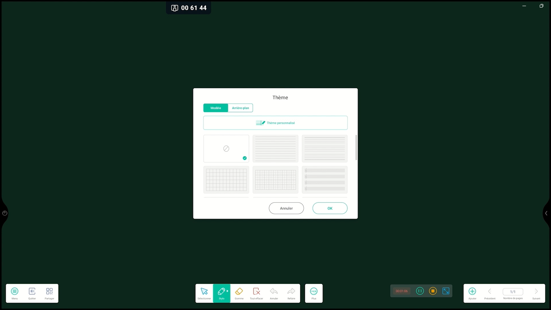 Il s’agit sans doute de l’élément du tableau numérique qu’un professeur souhaite en premier personnaliser. En allant dans Menu > Thème, on vous donne accès à 2 types de fond :